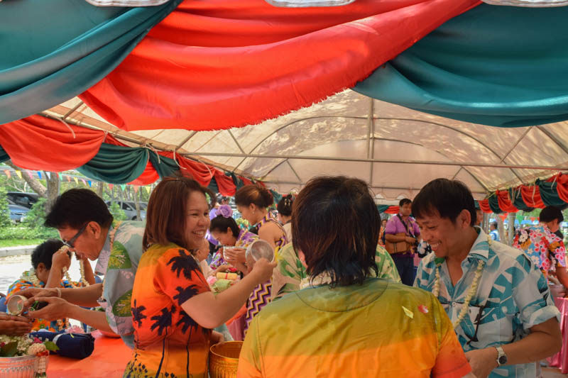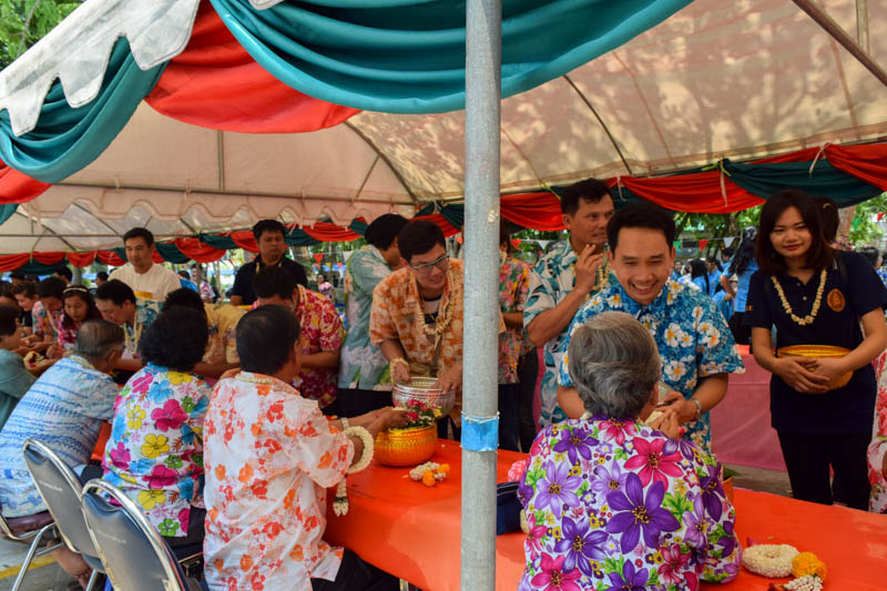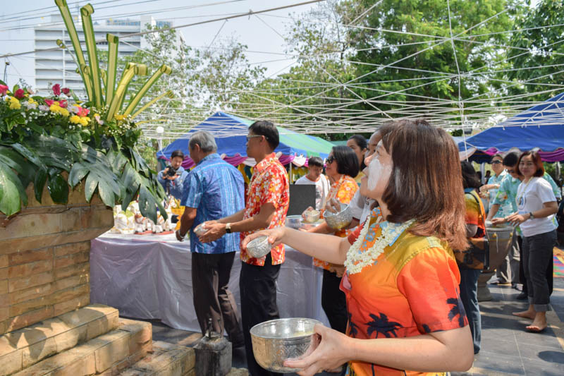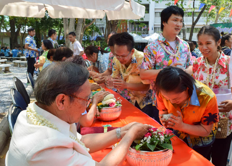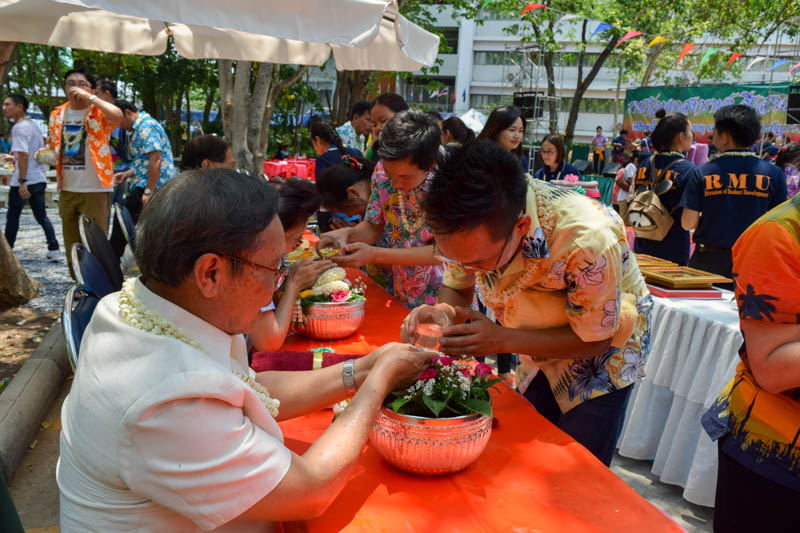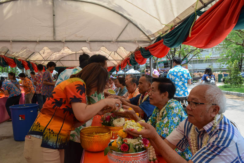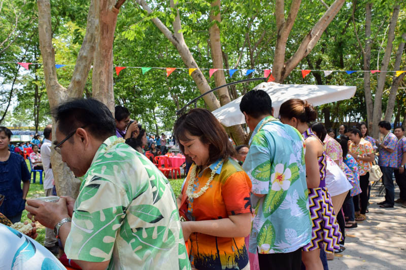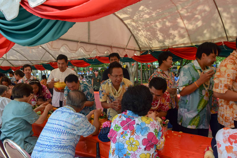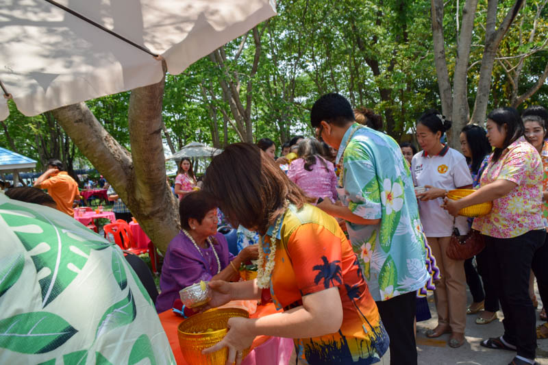 นางลำดวน ดวงคมทา ผอ.กองบริหารงานบุคคล พร้อมบุคลากรกองบริหารงานบุคคล ร่วมงาน "ราชภัฏมหาสงกรานต์ สืบสานประเพณี พิธีรดน้ำขอพรผู้สูงอายุ มรม." วันที่ 9 เมษายน 2559