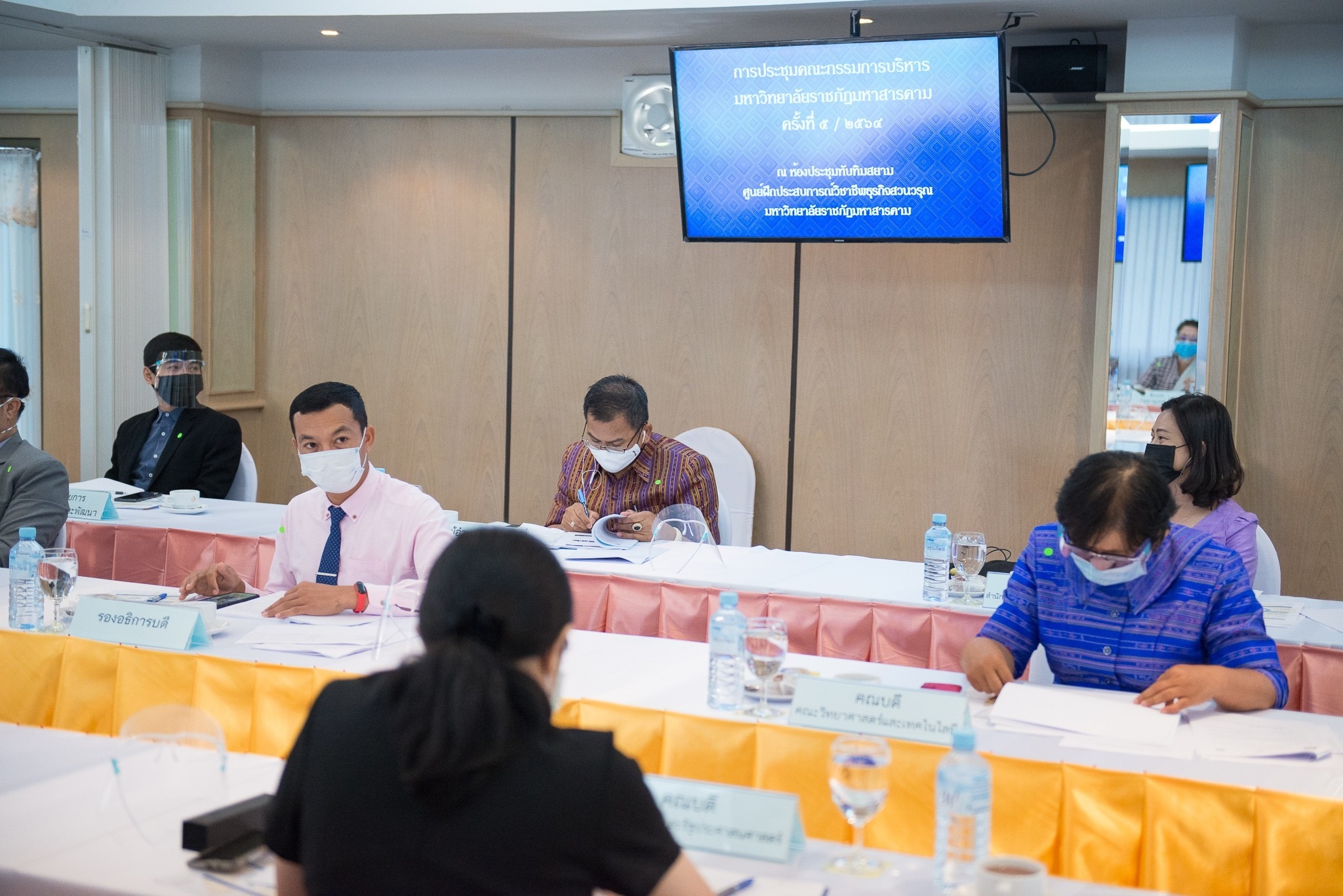 การประชุมคณะกรรมการบริหารมหาวิทยาลัยราชภัฏมหาสารคาม ครั้งที่ 5 / 2564 วันศุกร์ที่ 7 พฤษภาคม 2564 เวลา 09.30 น. ณ.ห้องประชุมทับทิมสยาม ชั้น 2 ศูนย์ฝึกประสบการณ์วิชาชีพธุรกิจสวนวรุณ มหาวิทยาลัยราชภัฏมหาสารคาม