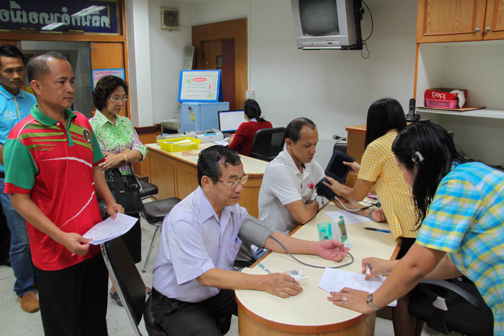 ข้าราชการและลูกจ้างประจำ มหาวิทยาลัยราชภัฏมหาสารคาม เข้าร่วมตรวจสุขภาพประจำปี ตามโครงการห่วงใยใส่ใจสุขภาพ ของโรงพยาบาลมหาสารคาม เมื่อวันที่ 23 มิถุนายน 2559 ณ โรงพยาบาลมหาสารคาม