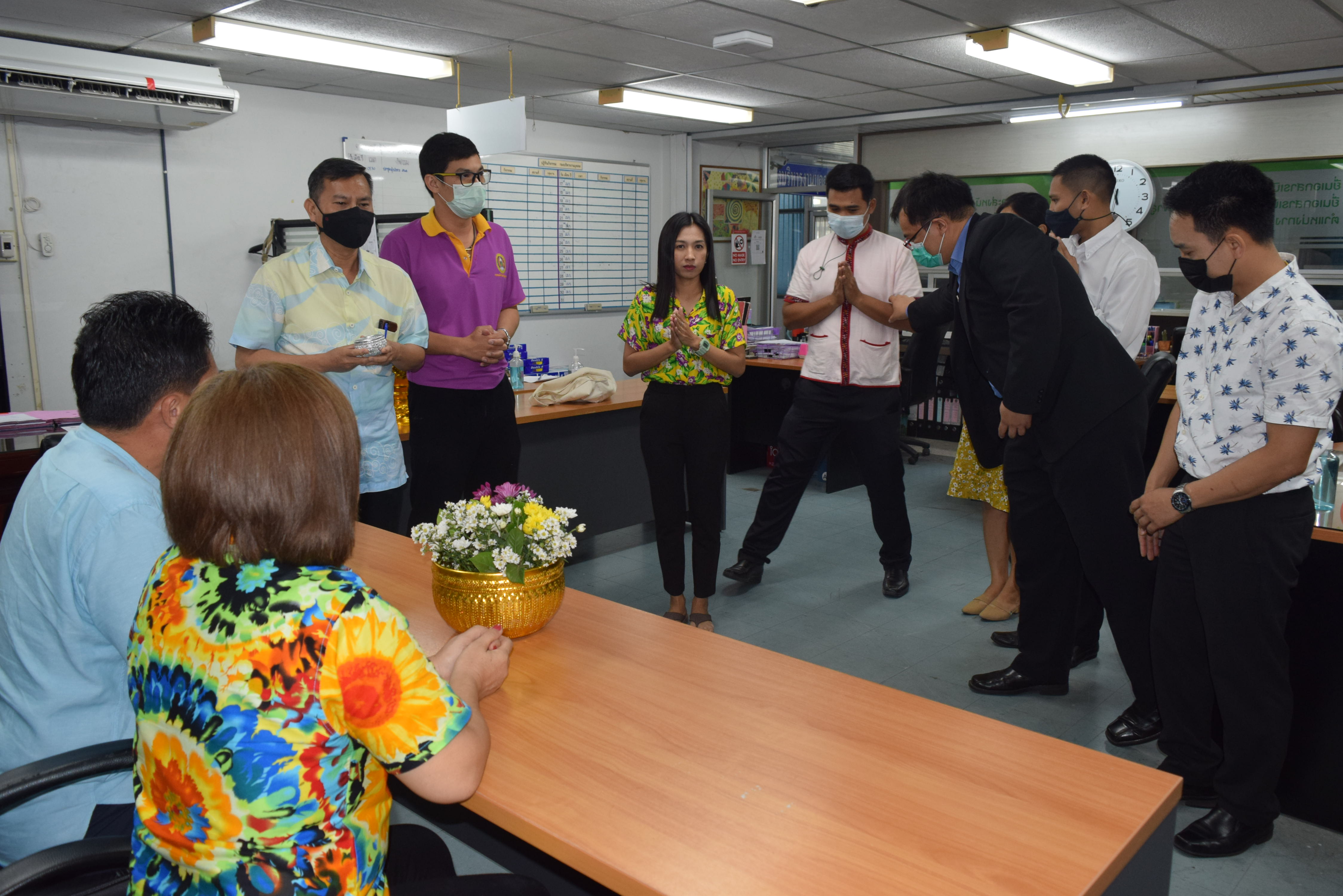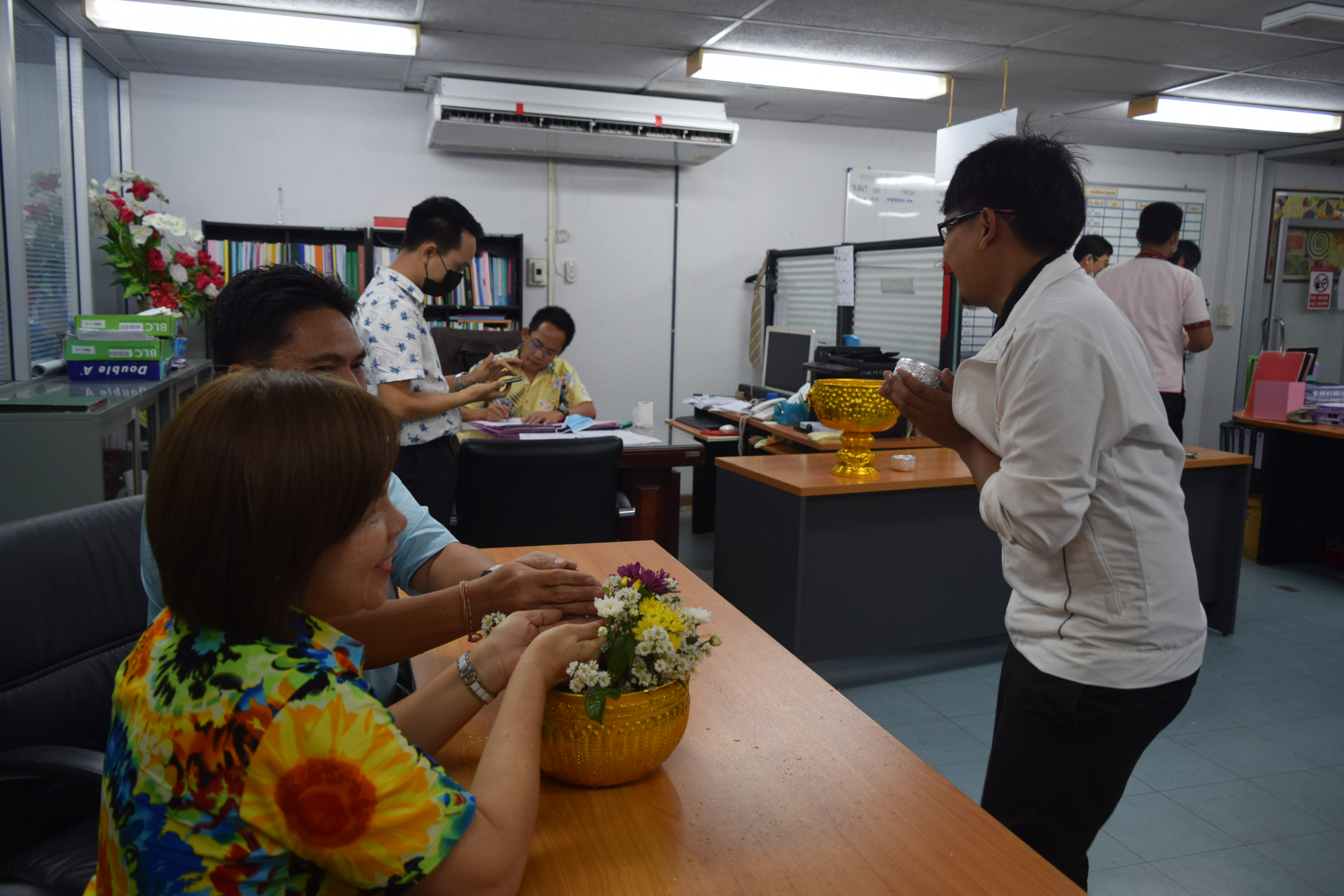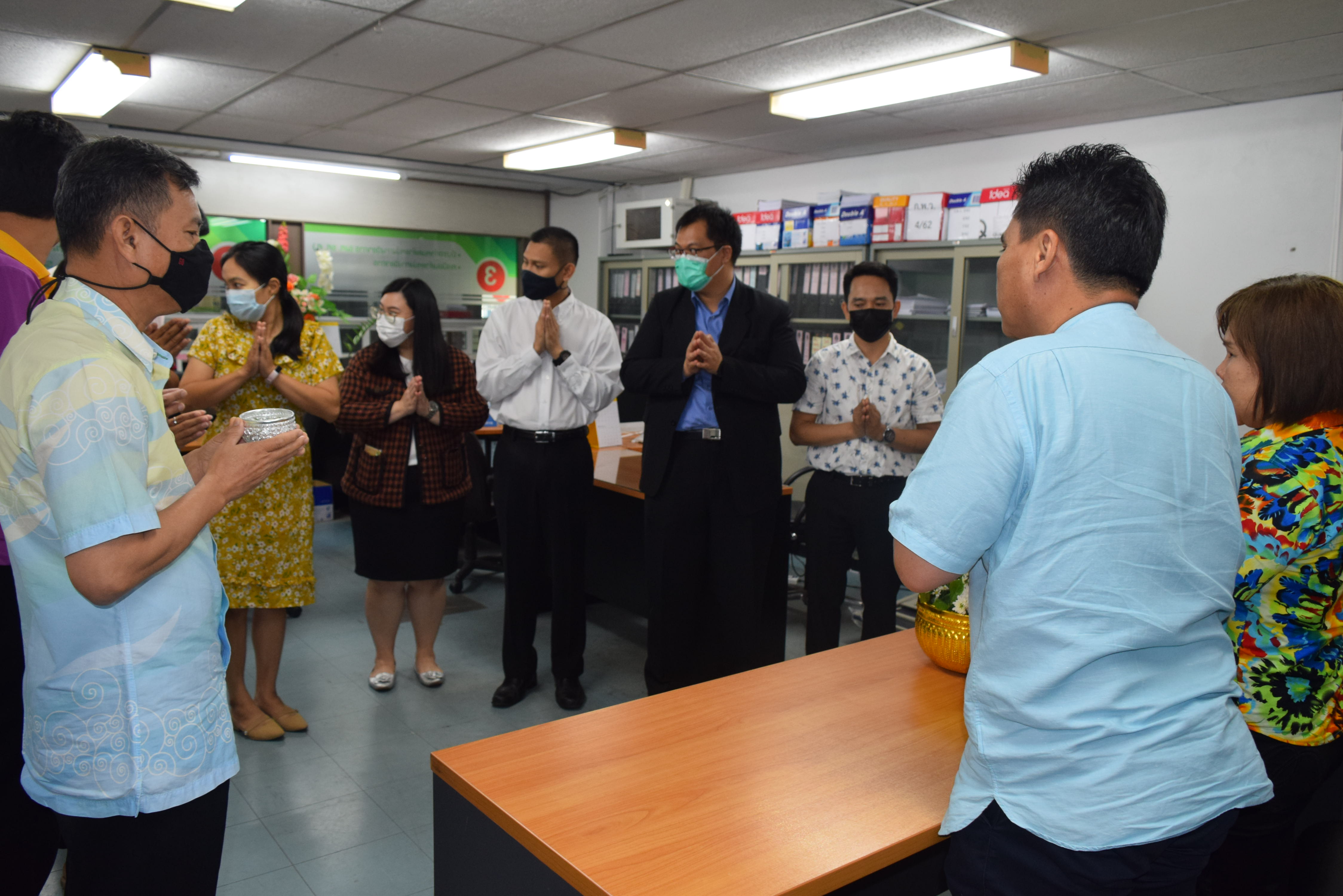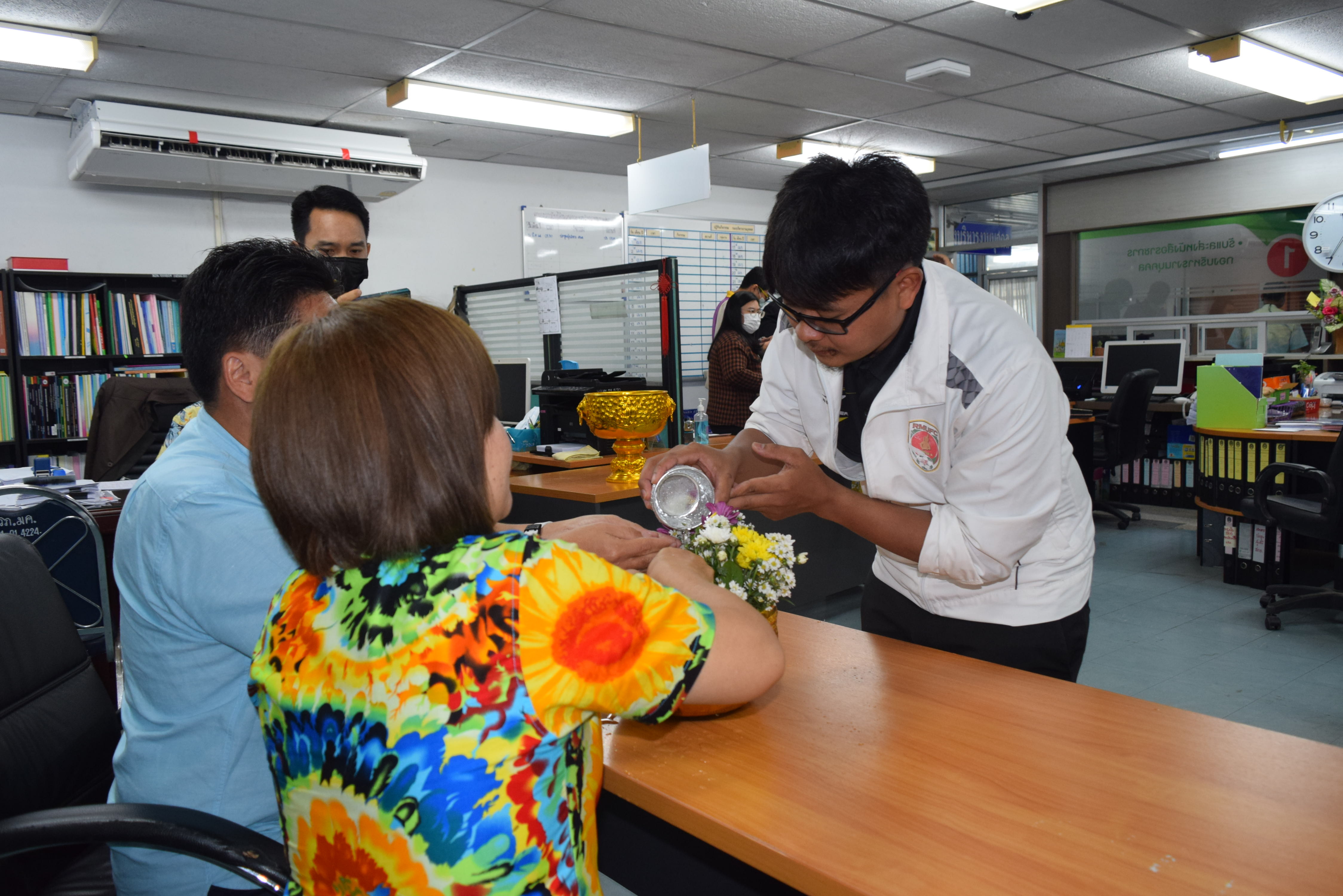 ผู้ช่วยศาสตราจารย์จักรกฤษณ์ จันทรศิริ รักษาราชการแทนผู้อำนวยการกองบริหารงานบุคคล มีข้อราชการที่จะหารือเกี่ยวกับการดำเนินงานของกองบริหารงานบุคคล พร้อมรับฟังความคิดเห็นจากบุคลากรทุกท่านและมอบนโยบายแนวทางการดำเนินงาน และจัดพิธีรดน้ำขอพร เนื่องในวันสงกรานต์ โดยมี นางลำดวน ดวงคมทา ผู้อำนวยการสำนักงานอธิการบดี มหาวิทยาลัยราชภัฏมหาสารคาม เป็นประธาน พร้อมบุคคลากรกองบริหารงานบุคคล มหาวิทยาลัยราชภัฏมหสารคาม เพื่อความเป็นสิริมงคล เพื่อให้เป็นการเริ่มต้นปีใหม่ไทยที่มีความสุข ณ ห้องประชุมกองบริหารงานบุคคล ชั้น 2 อาคารเฉลิมพระเกียรติ 72 พรรษา