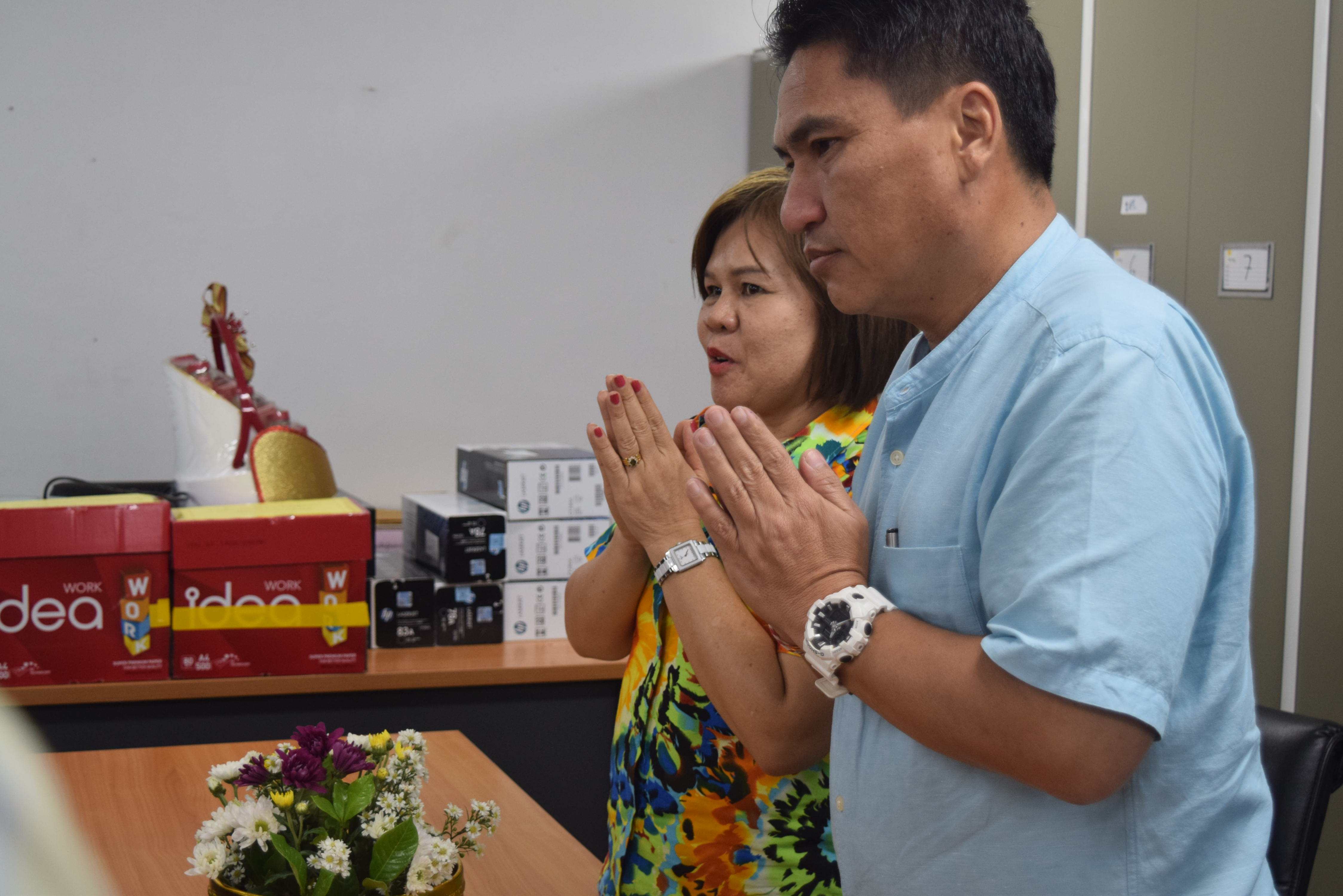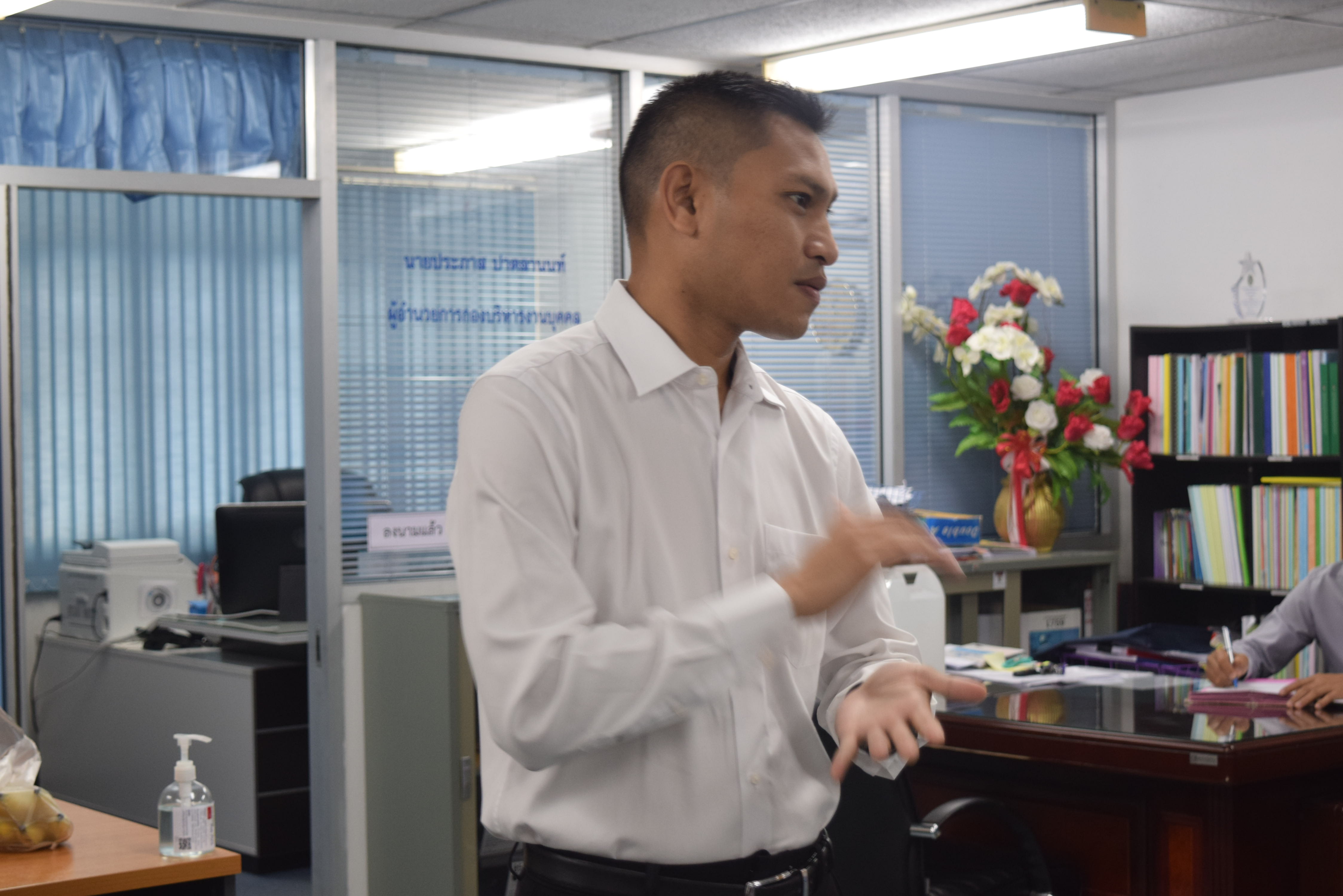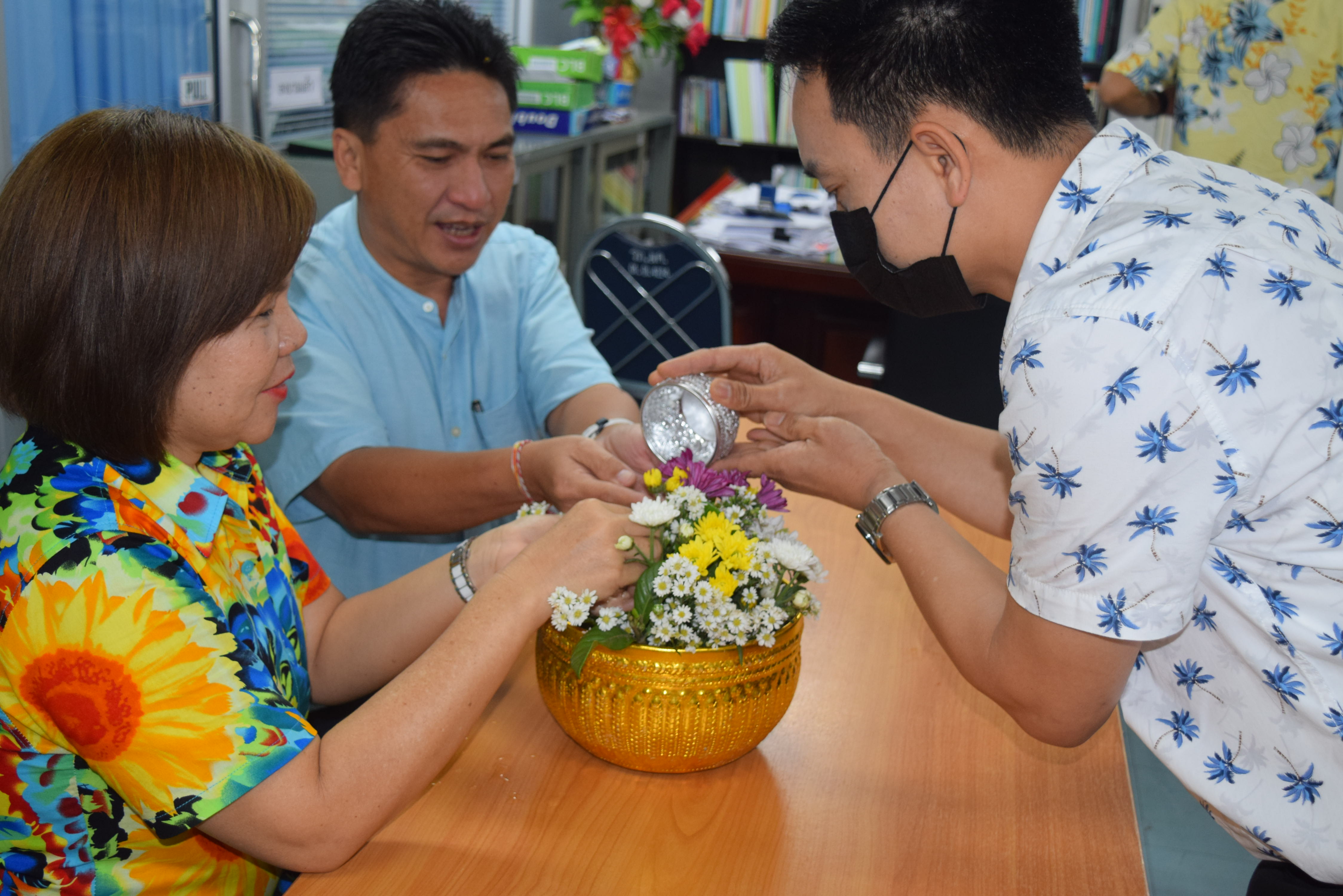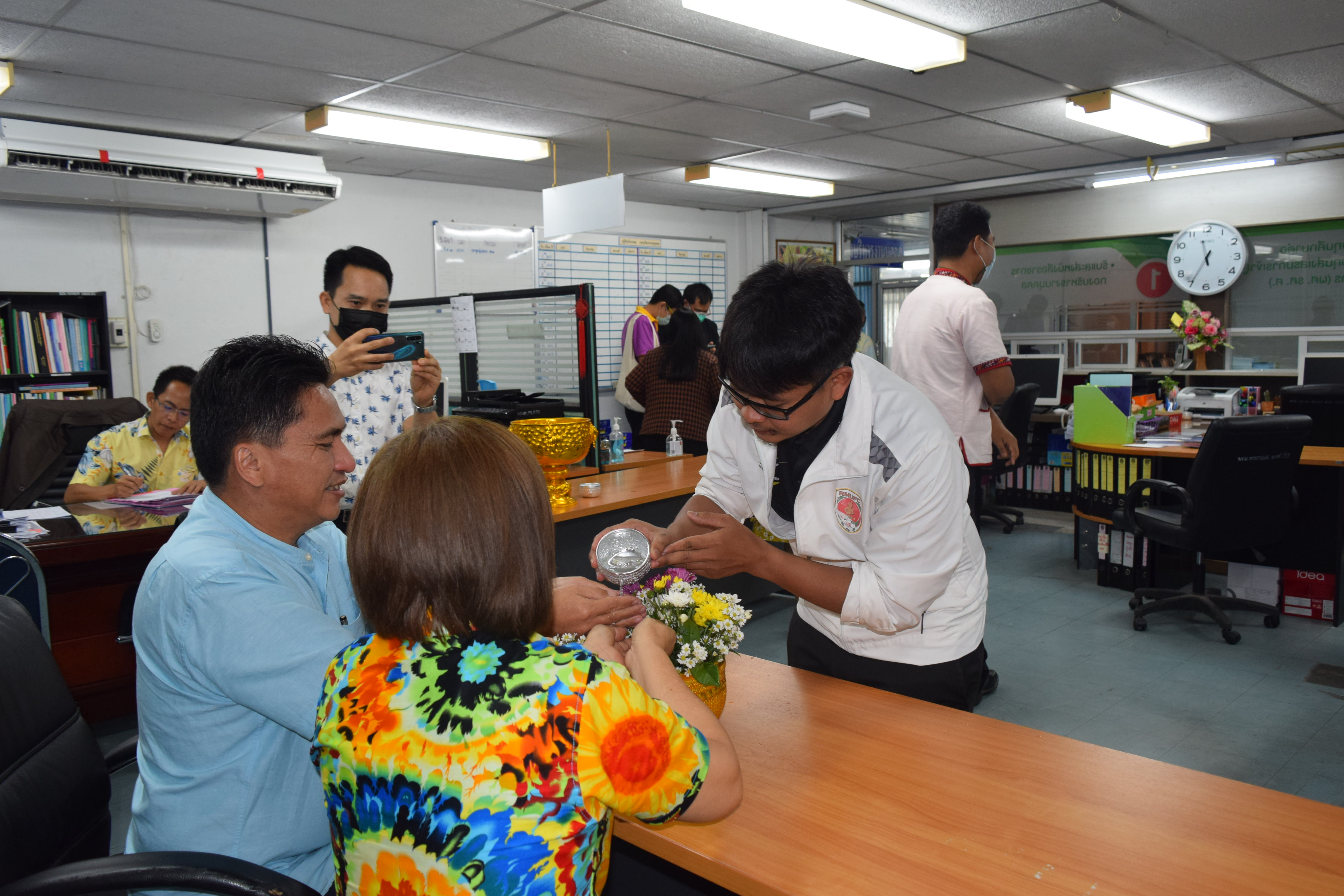 ผู้ช่วยศาสตราจารย์จักรกฤษณ์ จันทรศิริ รักษาราชการแทนผู้อำนวยการกองบริหารงานบุคคล มีข้อราชการที่จะหารือเกี่ยวกับการดำเนินงานของกองบริหารงานบุคคล พร้อมรับฟังความคิดเห็นจากบุคลากรทุกท่านและมอบนโยบายแนวทางการดำเนินงาน และจัดพิธีรดน้ำขอพร เนื่องในวันสงกรานต์ โดยมี นางลำดวน ดวงคมทา ผู้อำนวยการสำนักงานอธิการบดี มหาวิทยาลัยราชภัฏมหาสารคาม เป็นประธาน พร้อมบุคคลากรกองบริหารงานบุคคล มหาวิทยาลัยราชภัฏมหสารคาม เพื่อความเป็นสิริมงคล เพื่อให้เป็นการเริ่มต้นปีใหม่ไทยที่มีความสุข ณ ห้องประชุมกองบริหารงานบุคคล ชั้น 2 อาคารเฉลิมพระเกียรติ 72 พรรษา