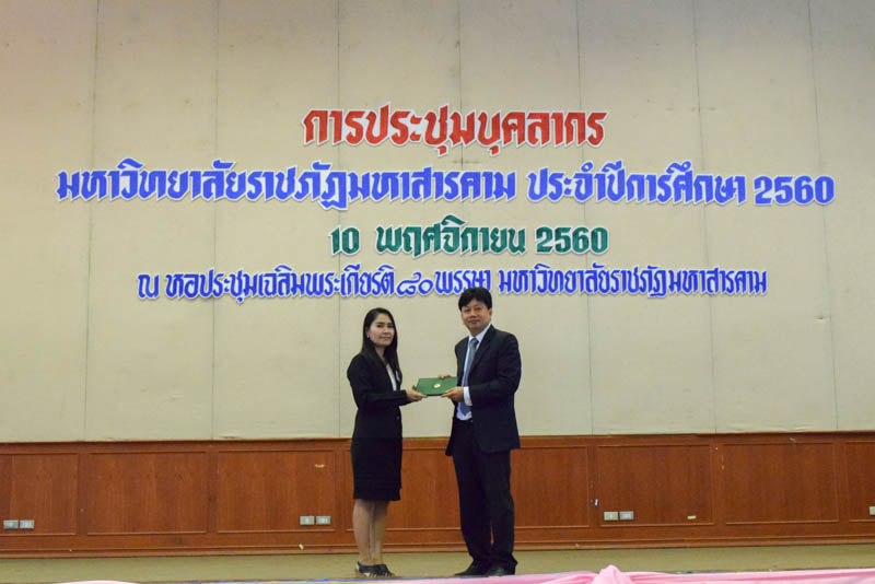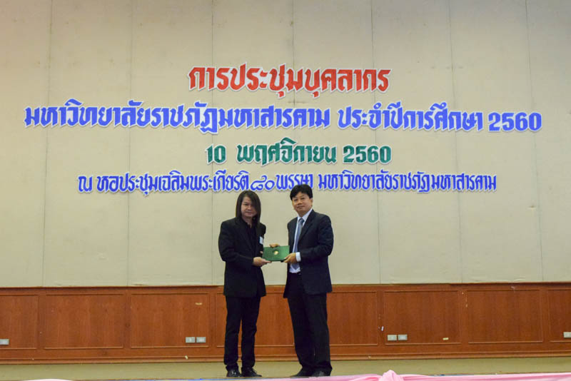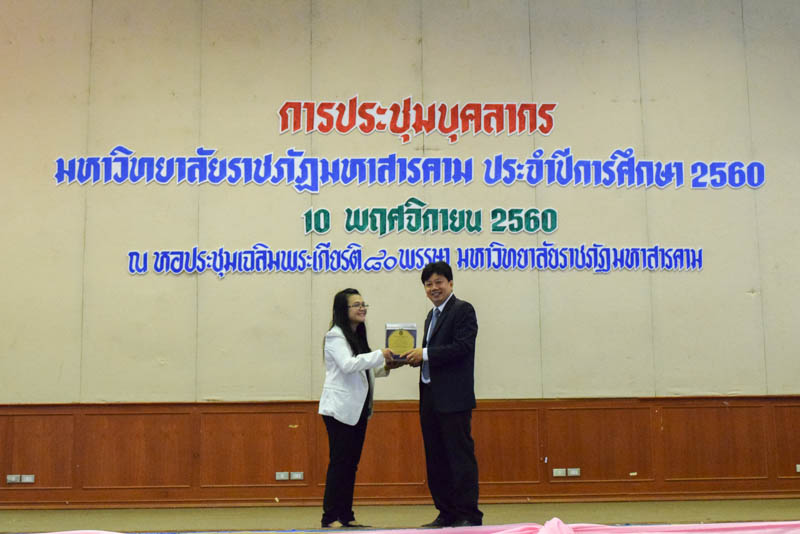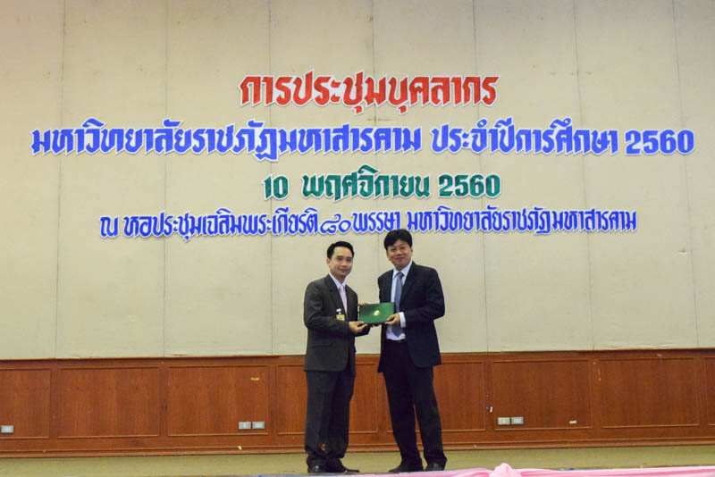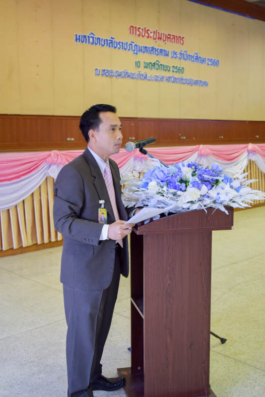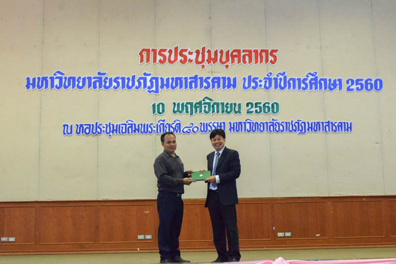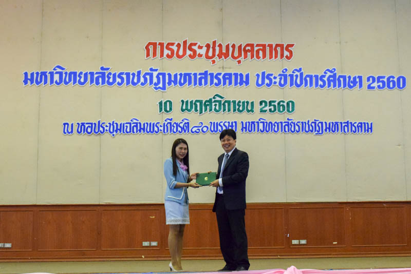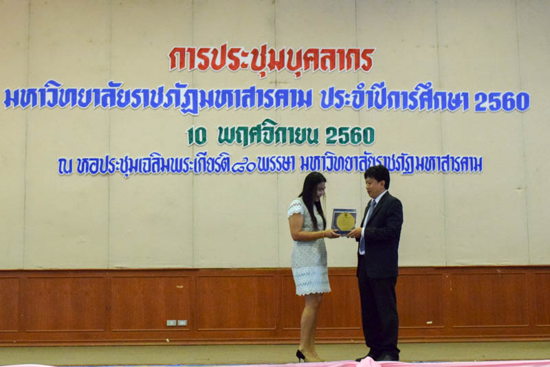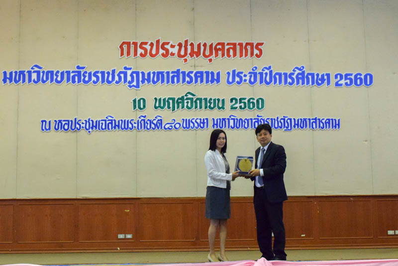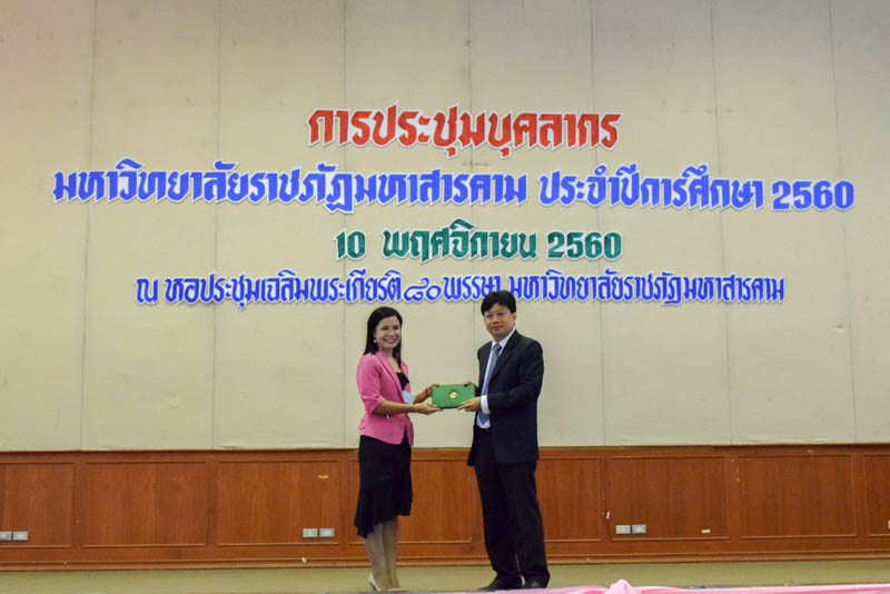 รองศาสตราจารย์ ดร.สิทธิชัย บุษหมั่น รักษาราชการแทนอธิการบดี เป็นประธานในการประชุมบุคลากรมหาวิทยาลัยราชภัฏมหาสารคาม ประจำปีการศึกษา 2560 เมื่อวันที่ 10 พฤศจิกายน 2560 ณ หอประชุมเฉลิมพระเกียรติ 80 พรรษา มหาวิทยาลัยราชภัฏมหาสารคาม เพื่อเป็นการแจ้งแจงแนวทางการปฏิบัติงาานและการแนวนโยบายของมหาวิทยาลัย ทั้งนี้ได้จัดให้มีพิธีมอบรางวัลยกย่องเชิดชูเกียรติบุคลากร เพื่อเป็นการสร้างขวัญกำลังใจและประกาศเกียรติคุณให้แก่บุคลากรมหาวิทยาลัยราชภัฏมหาสารคาม