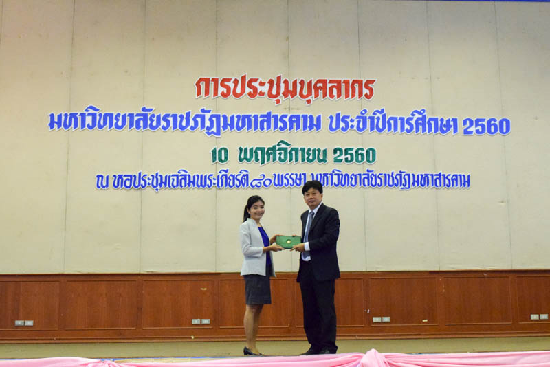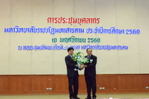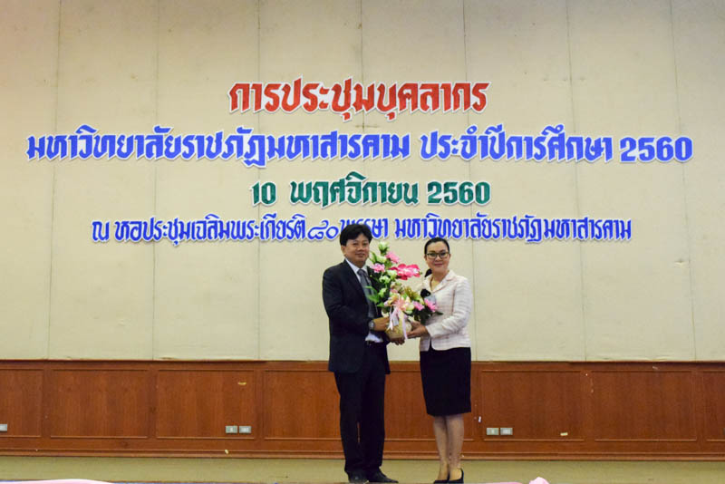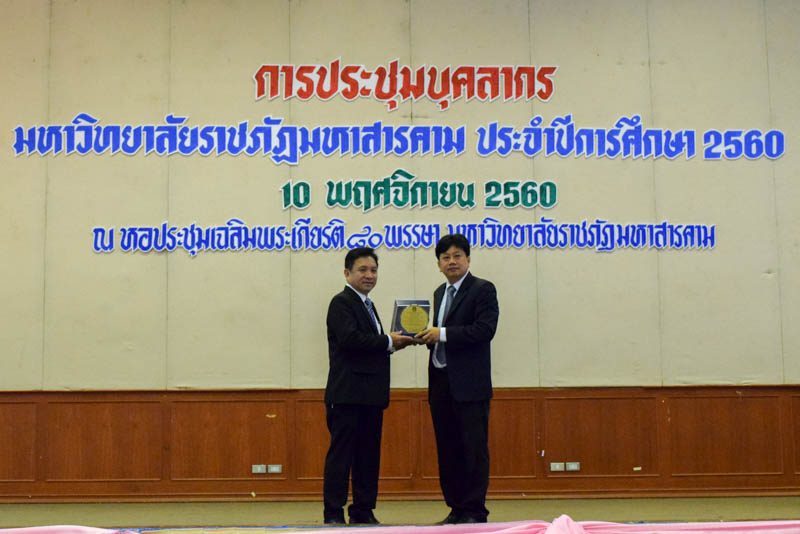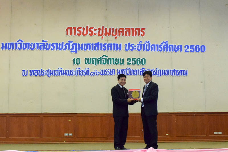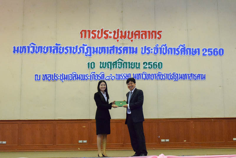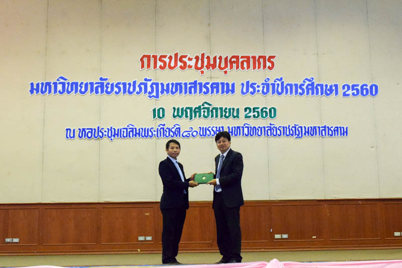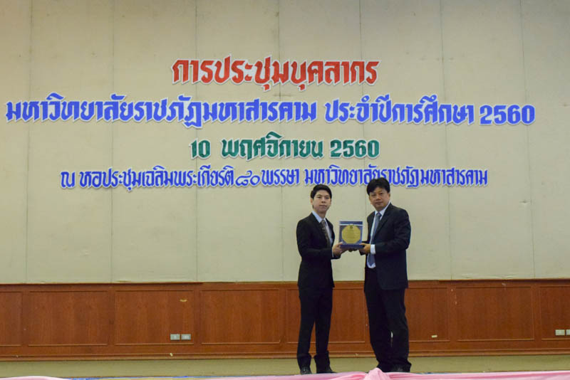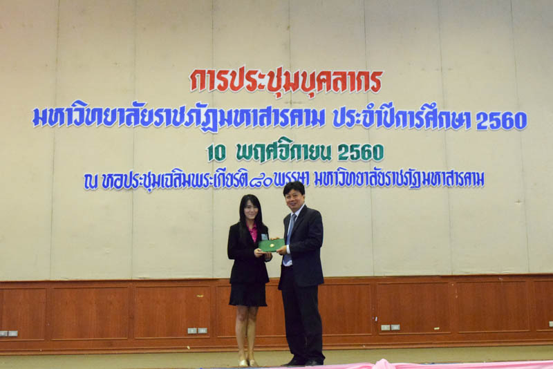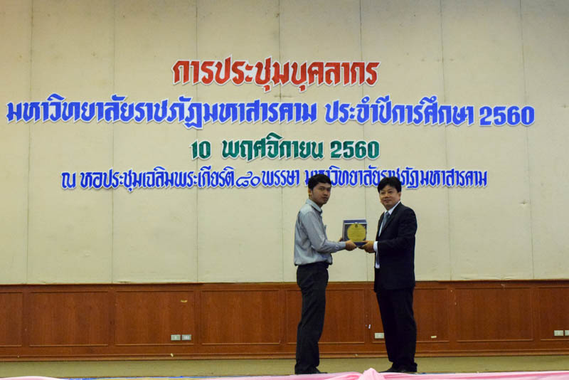 รองศาสตราจารย์ ดร.สิทธิชัย บุษหมั่น รักษาราชการแทนอธิการบดี เป็นประธานในการประชุมบุคลากรมหาวิทยาลัยราชภัฏมหาสารคาม ประจำปีการศึกษา 2560 เมื่อวันที่ 10 พฤศจิกายน 2560 ณ หอประชุมเฉลิมพระเกียรติ 80 พรรษา มหาวิทยาลัยราชภัฏมหาสารคาม เพื่อเป็นการแจ้งแจงแนวทางการปฏิบัติงาานและการแนวนโยบายของมหาวิทยาลัย ทั้งนี้ได้จัดให้มีพิธีมอบรางวัลยกย่องเชิดชูเกียรติบุคลากร เพื่อเป็นการสร้างขวัญกำลังใจและประกาศเกียรติคุณให้แก่บุคลากรมหาวิทยาลัยราชภัฏมหาสารคาม