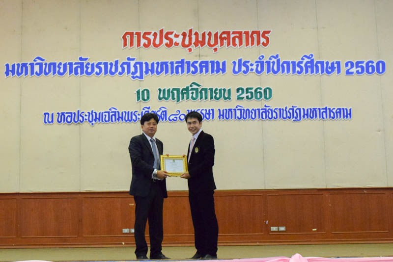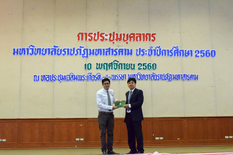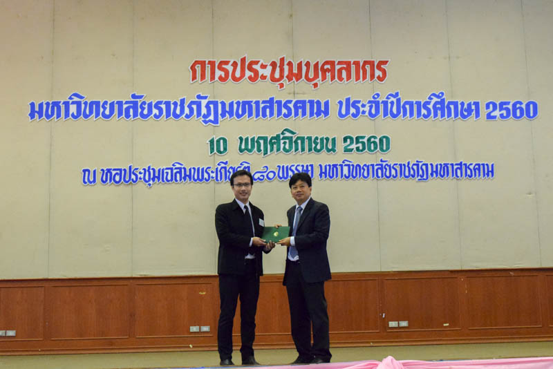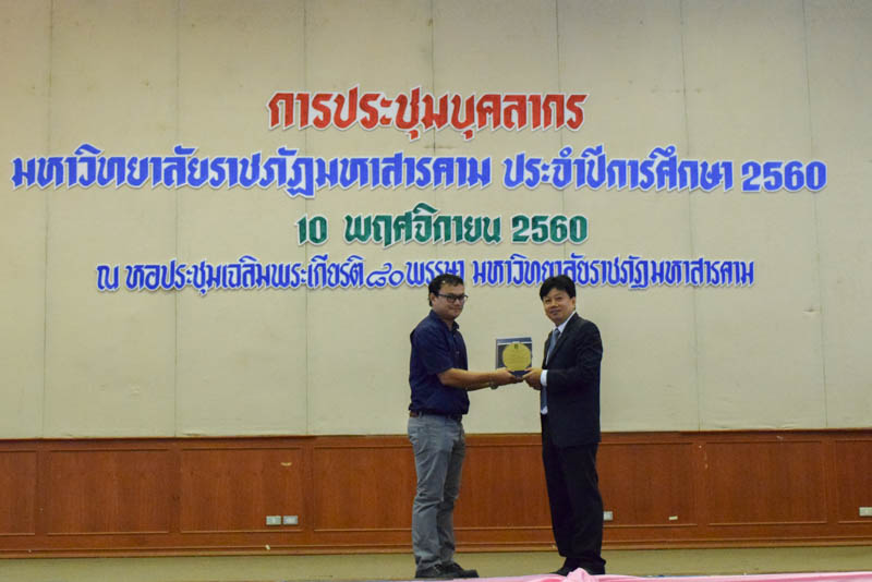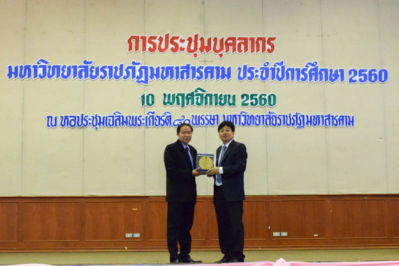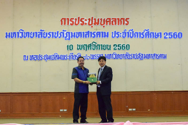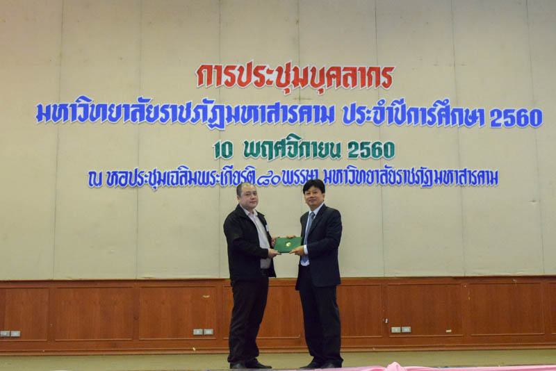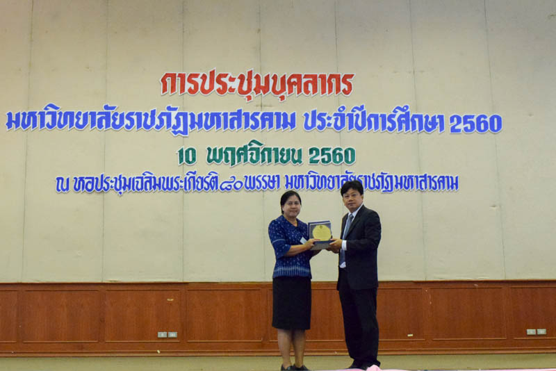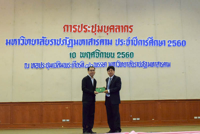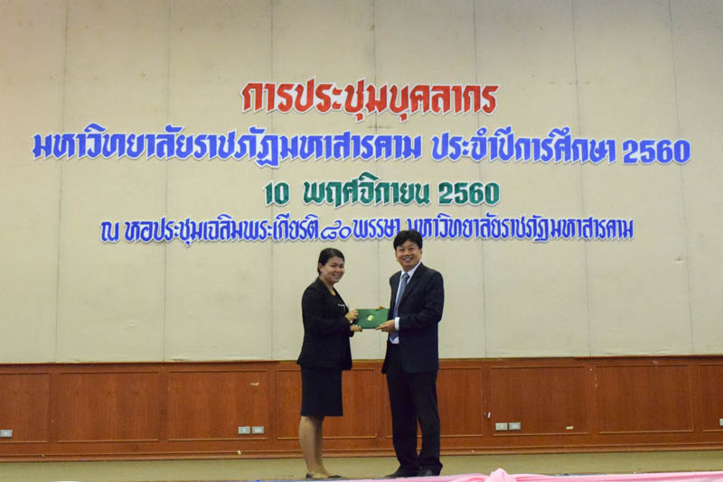 รองศาสตราจารย์ ดร.สิทธิชัย บุษหมั่น รักษาราชการแทนอธิการบดี เป็นประธานในการประชุมบุคลากรมหาวิทยาลัยราชภัฏมหาสารคาม ประจำปีการศึกษา 2560 เมื่อวันที่ 10 พฤศจิกายน 2560 ณ หอประชุมเฉลิมพระเกียรติ 80 พรรษา มหาวิทยาลัยราชภัฏมหาสารคาม เพื่อเป็นการแจ้งแจงแนวทางการปฏิบัติงาานและการแนวนโยบายของมหาวิทยาลัย ทั้งนี้ได้จัดให้มีพิธีมอบรางวัลยกย่องเชิดชูเกียรติบุคลากร เพื่อเป็นการสร้างขวัญกำลังใจและประกาศเกียรติคุณให้แก่บุคลากรมหาวิทยาลัยราชภัฏมหาสารคาม
