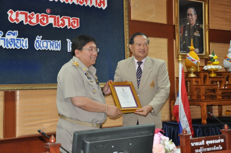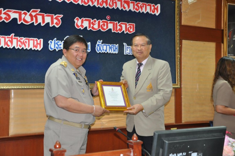 รองศาสตราจารย์สมชาย วงษ์เกษม อธิการบดีมหาวิทยาลัยราชภัฏมหาสารคาม รับมอบเกียรติบัตร มูลนิธิรางวัลสมเด็จเจ้าฟ้ามหาจักรี ด้วยการปฏิบัติหน้าที่เป็นคณะกรรมการคัดเลือกครู ผู้สมควรได้รับพระราชทานรางวัลสมเด็จเจ้าฟ้ามหาจักรี จังหวัดมหาสารคาม ประจำปี 2558 จากผู้ว่าราชการจังหวัดมหาสารคาม พร้อมเข้าร่วมประชุมหัวหน้าส่วน ที่ห้องประชุม 406 ศาลากลางจังหวัดมหาสารคาม วันที่ 29 ธันวาคม 2558