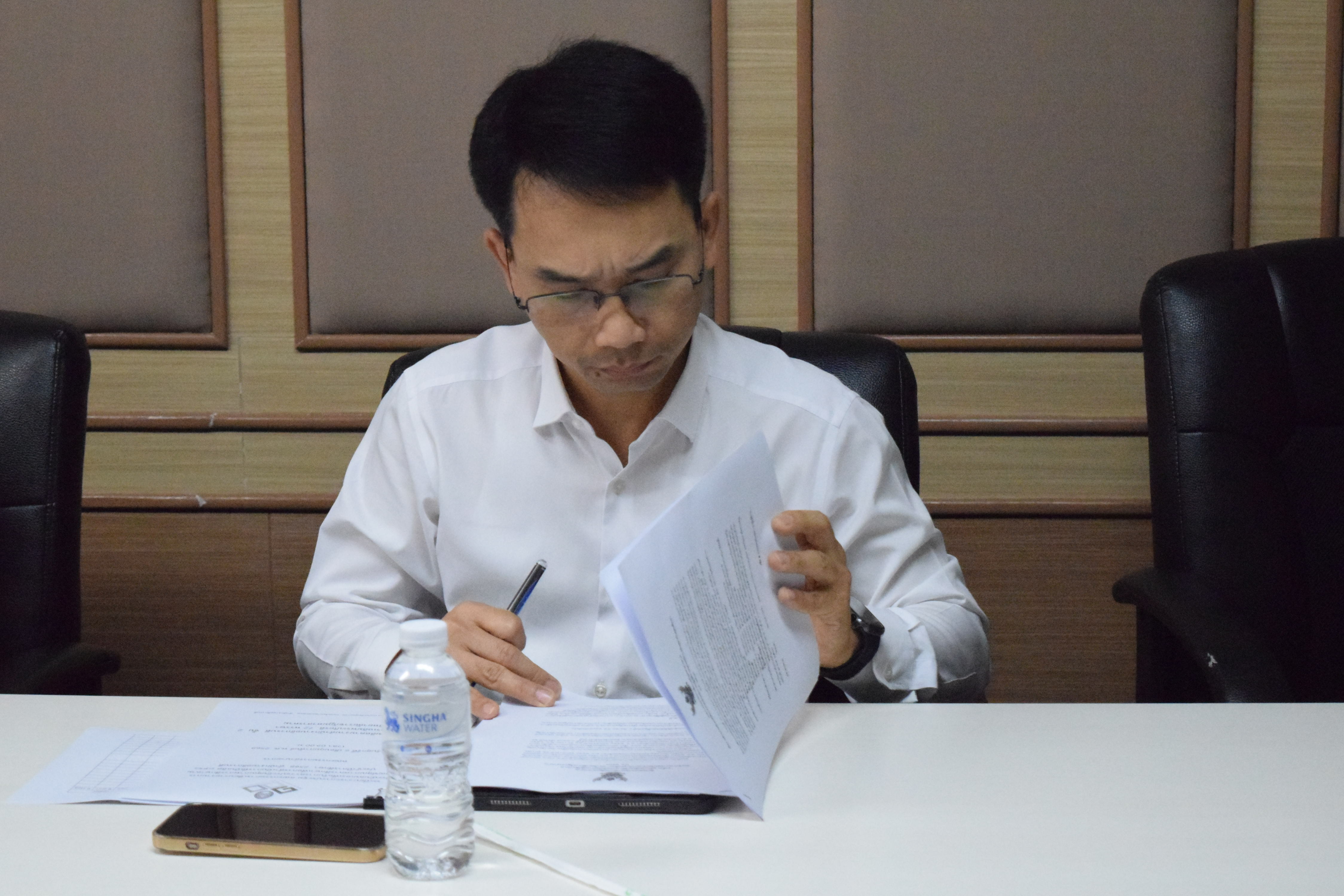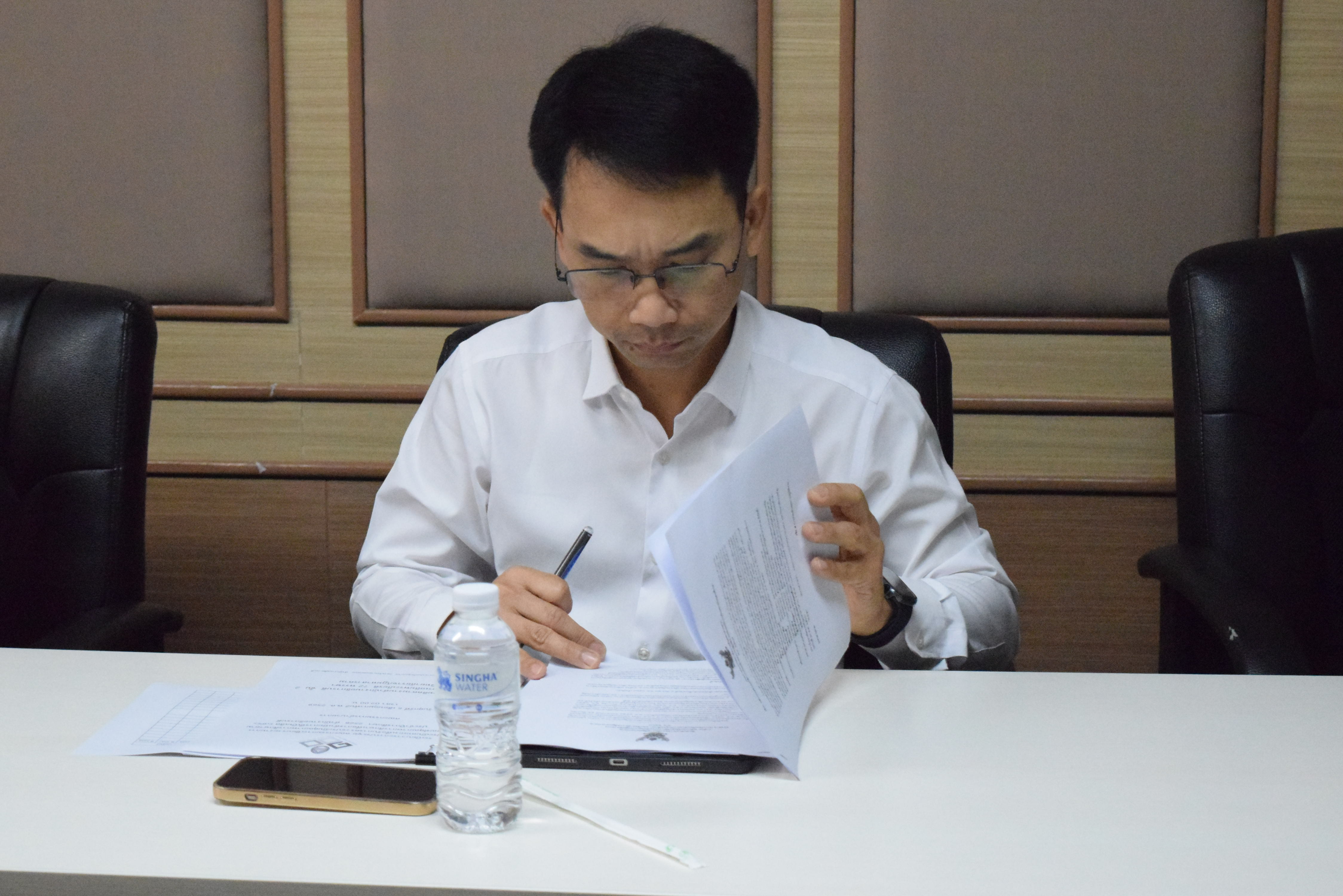 ณ ห้องประชุมติดตามงาน สำนักงานอธิการบดี ชั้น 2 อาคารเฉลิมพระเกียรติ 72 พรรษา มหาวิทยาลัยราชภัฏมหาสารคาม