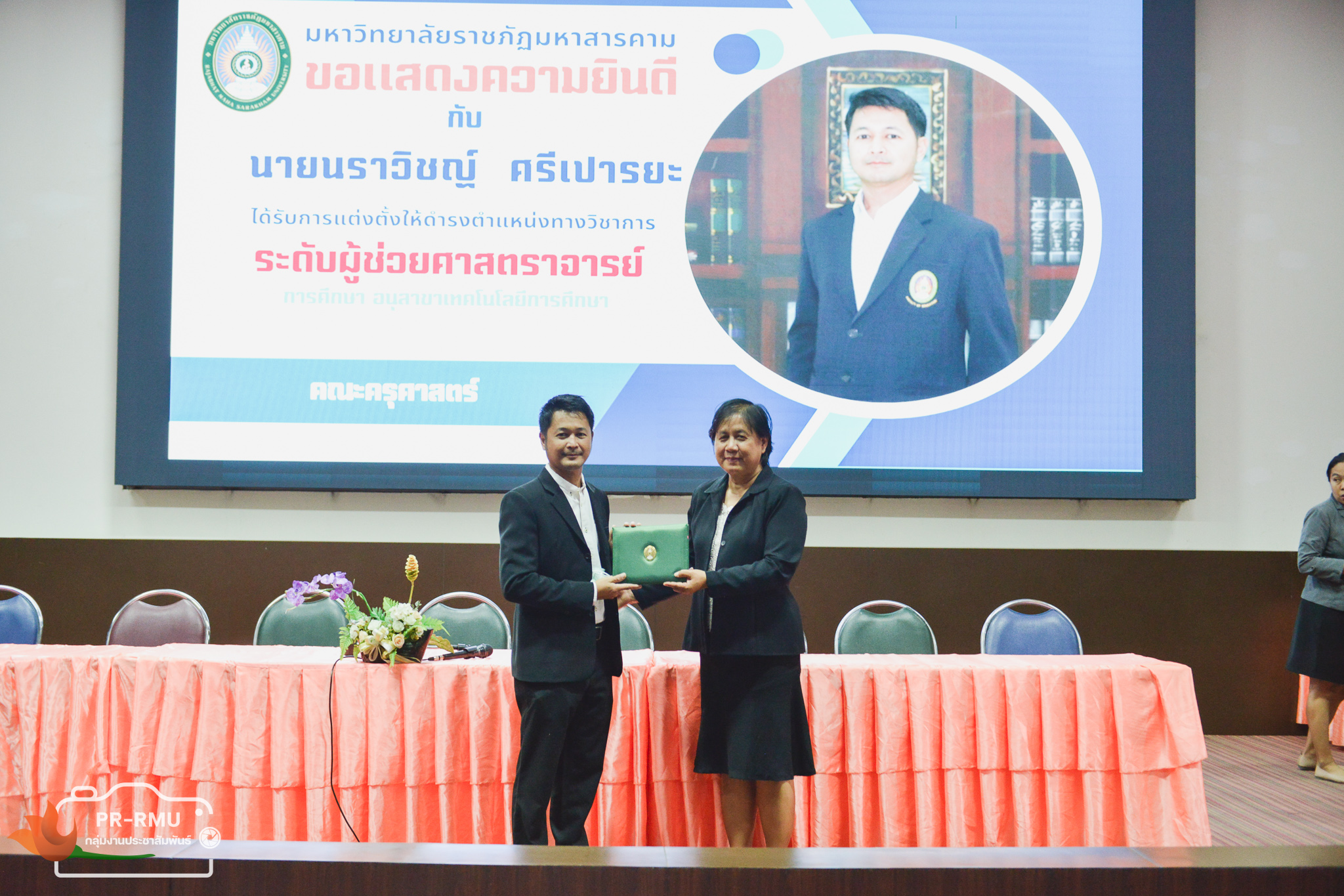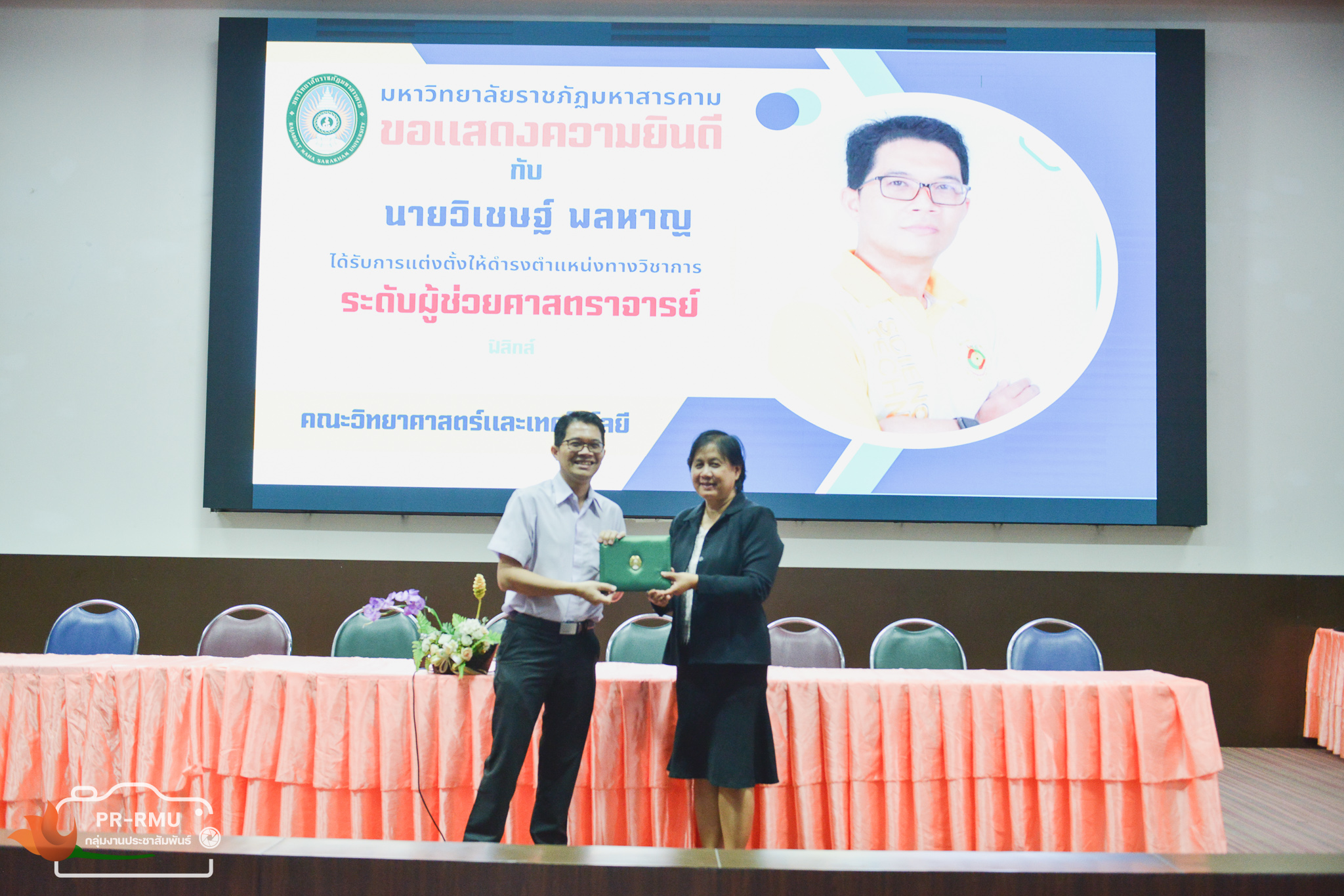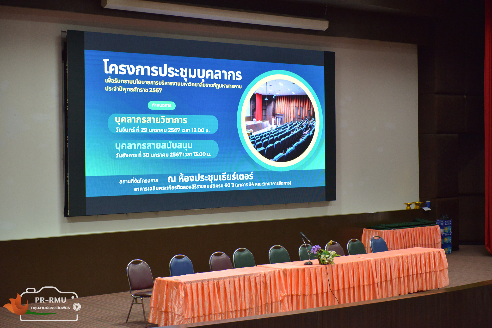 อาจารย์ ดร.เนตรชนก จันทร์สว่าง คณบดีคณะวิทยาศาสตร์และเทคโนโลยี รักษาราชการแทนอธิการบดี มหาวิทยาลัยราชภัฏมหาสารคาม เป็นประธาน เปิดโครงการประชุมบุคลากร พร้อมด้วยคณะผู้บริหาร บุคลากรสายวิชาการ เพื่อเข้ารับทราบนโยบายการบริหารงานมหาวิทยาลัยราชภัฏมหาสารคาม ประจำปีพุทธศักราช 2567